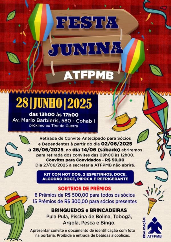 Autor: - 01/07/2025A equipe ATFPMB gostaria de agradecer a presença de todos os sócios e familiares na nossa FESTA JUNINA 2025.